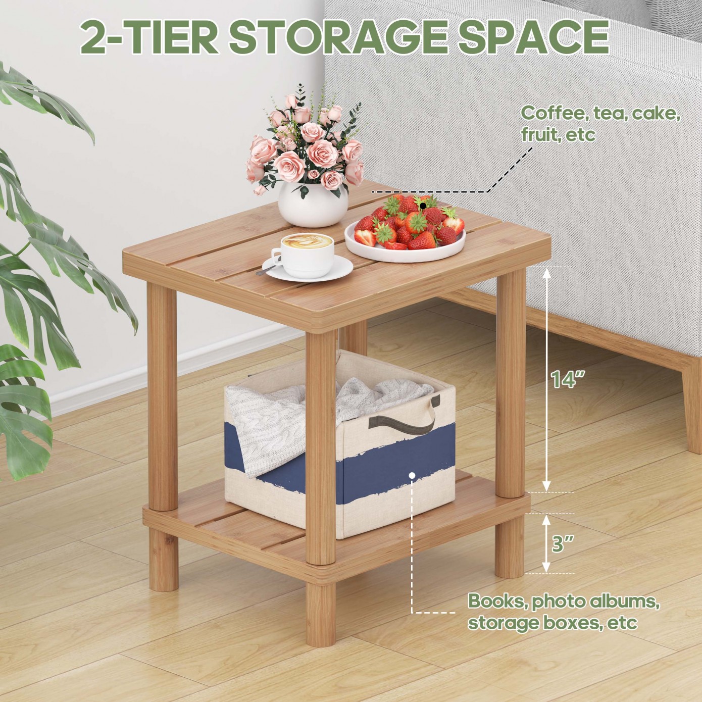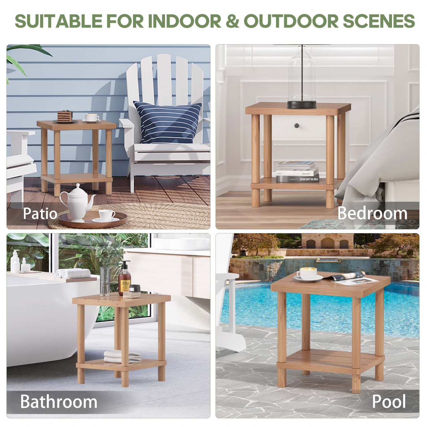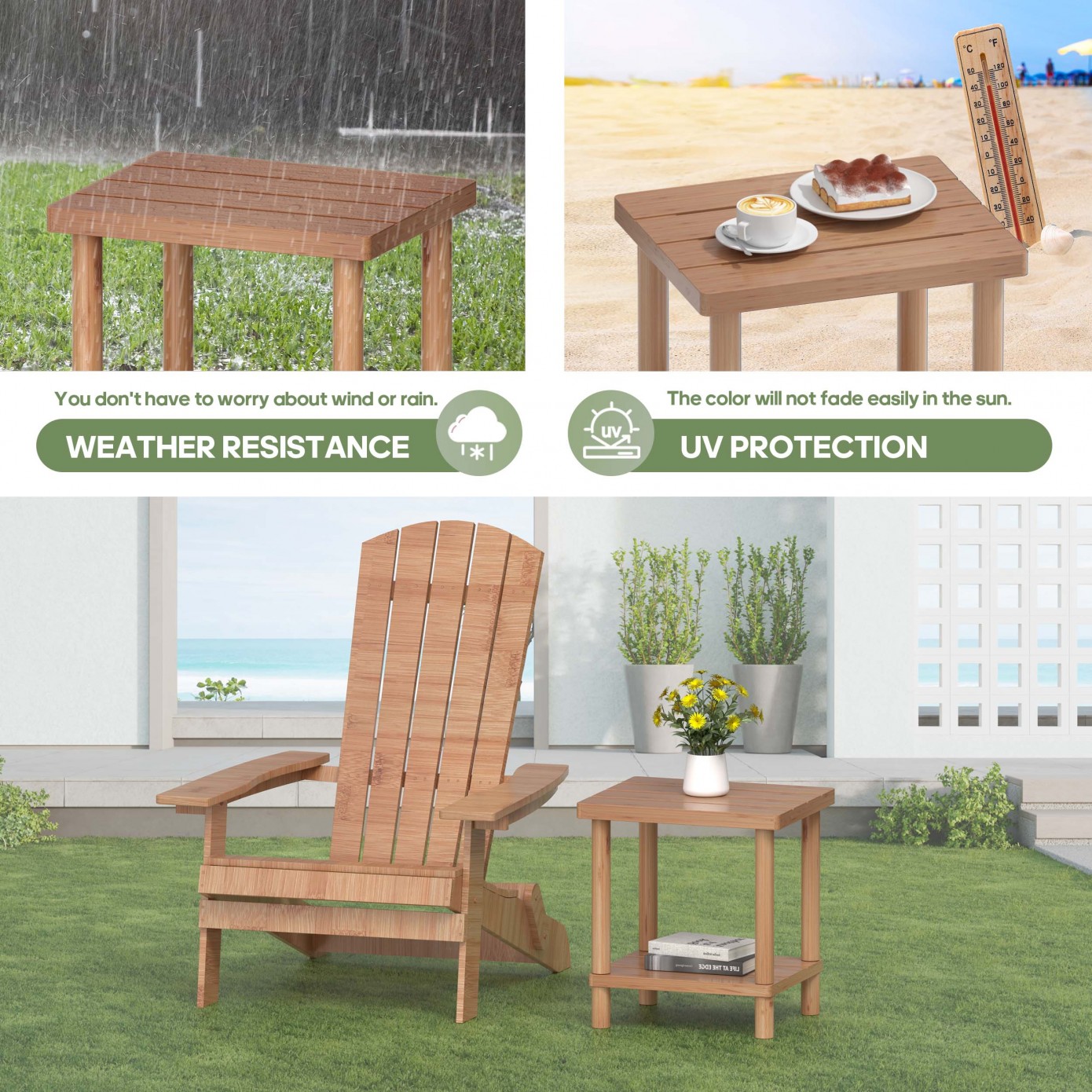 Outdoor Side Table, 2-Tier Small Outdoor Table for Patio, Adirondack Side Table for Outside, Bamboo End Table for Pool, Porch, Weather Resistant Easy Maintenance (Natural)