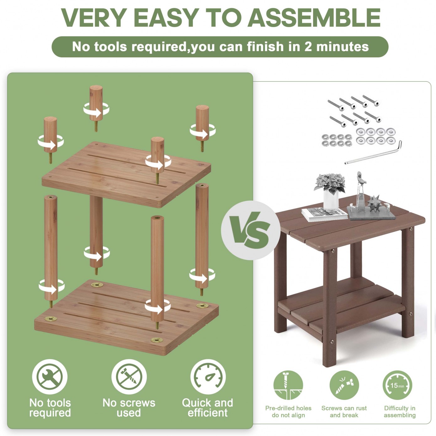 16 reviews for Outdoor Side Table, 2-Tier Small Outdoor Table for Patio, Adirondack Side Table for Outside, Bamboo End Table for Pool, Porch, Weather Resistant Easy Maintenance (Natural)